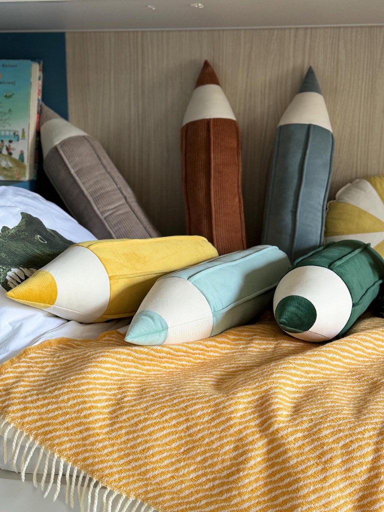 2. stylish decoration : With its unique crayon shape and careful stitching, the hand-stitched pillows will perfectly complement the decor of any child's interior. There are crayon colors to choose from as in a rainbow in the sky. Colorful crayons are a decoration good for boy's and girl's room