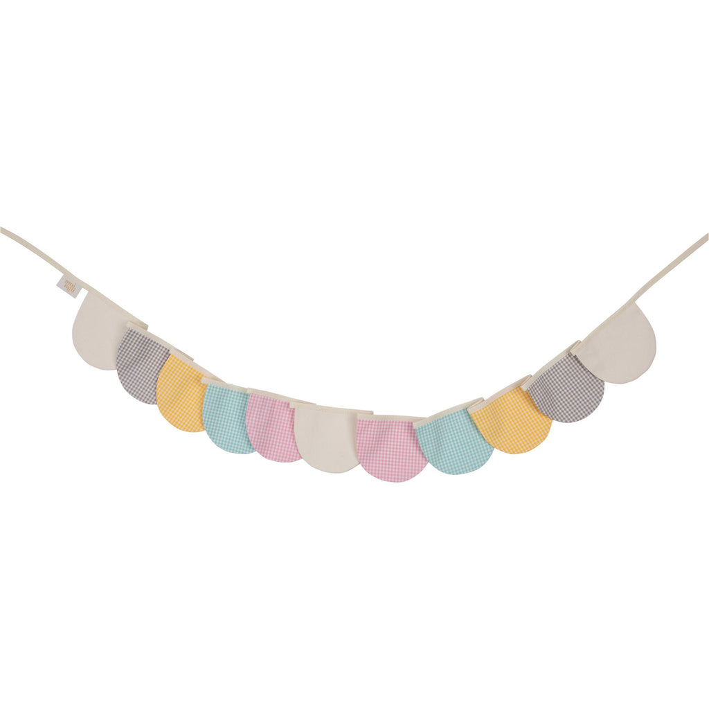 Like all Moi Mili garlands, this piece is a versatile wall decoration that brightens up interiors with ease. It consists of beautifully crafted cotton pennants, securely sewn to a durable trimming. Perfect for decorating a child's room, you can hang it over a bed, along a wall, or use it as a whimsical touch for celebrations and special occasions. It also makes a lovely backdrop for photoshoots, parties, or theatrical scenes.
