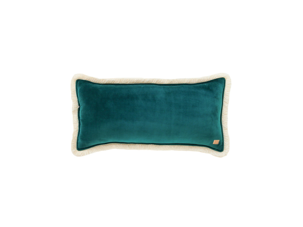 "Smaragd" Nackenrolle aus weichem Samt mit Fransen