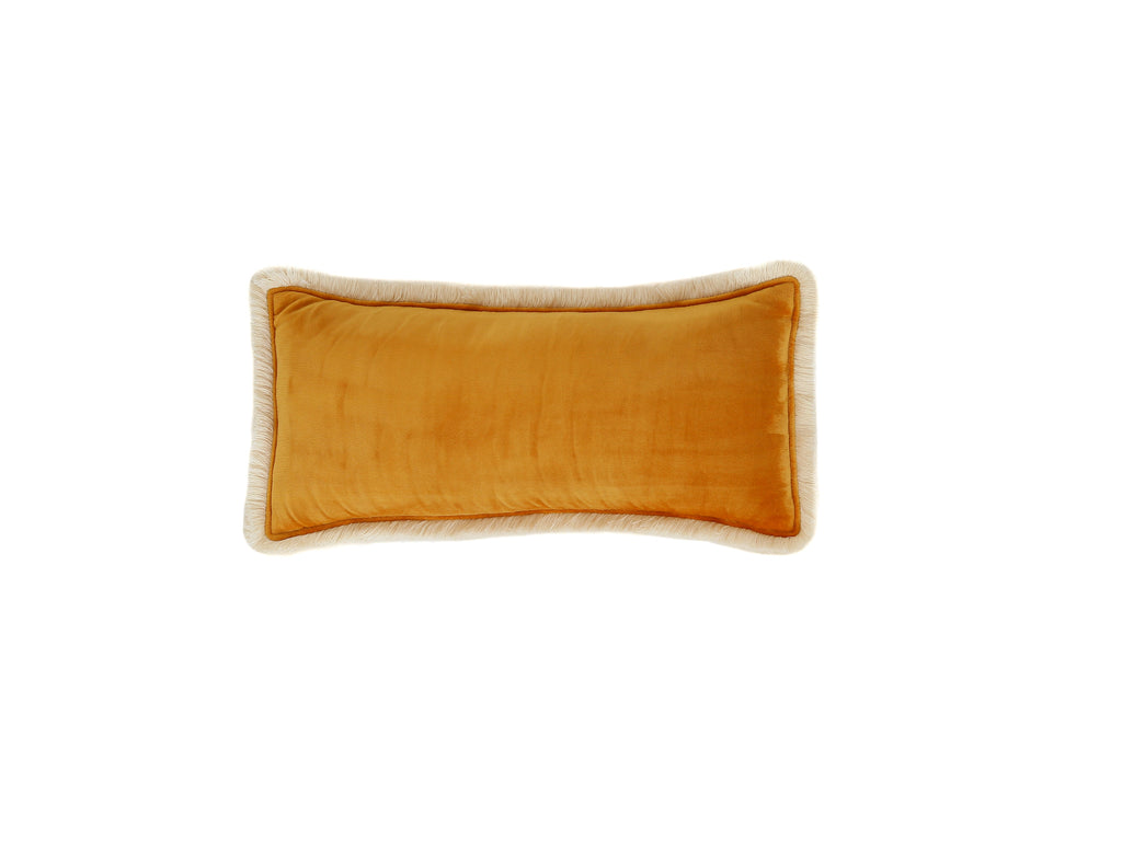 "Senf" Nackenrolle aus weichem Samt mit Fransen