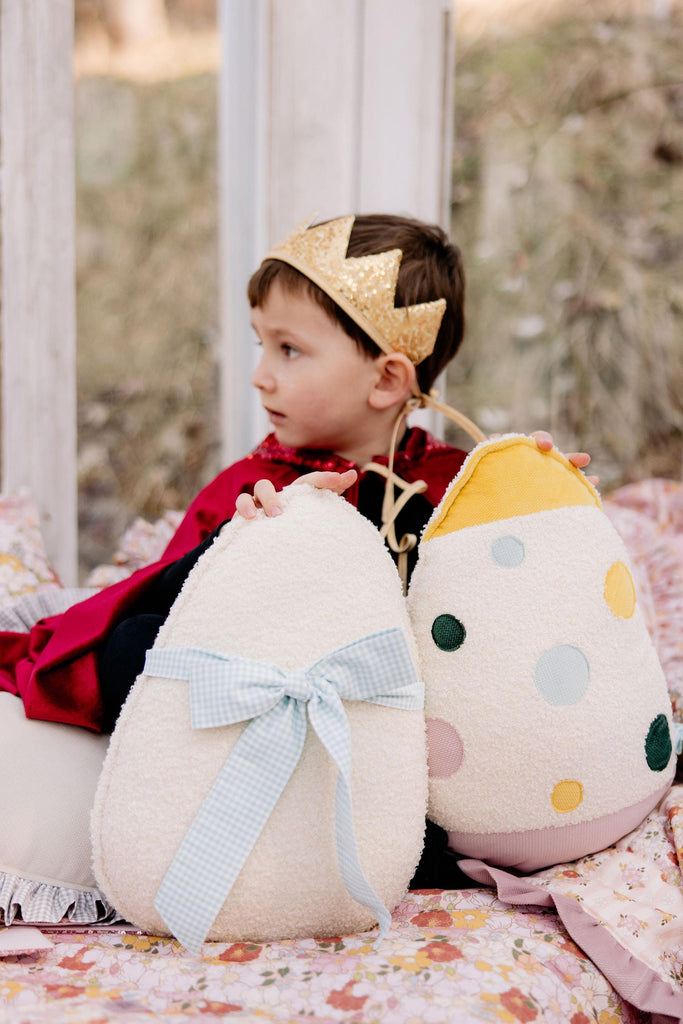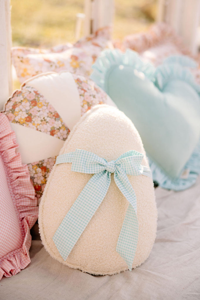 Fluffy Boucle Easter Egg Pillow "Mint Bow", Easter home decor, gift for mum, toddler easter gift, egg cushion, charming sofa decoration