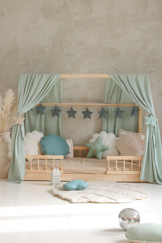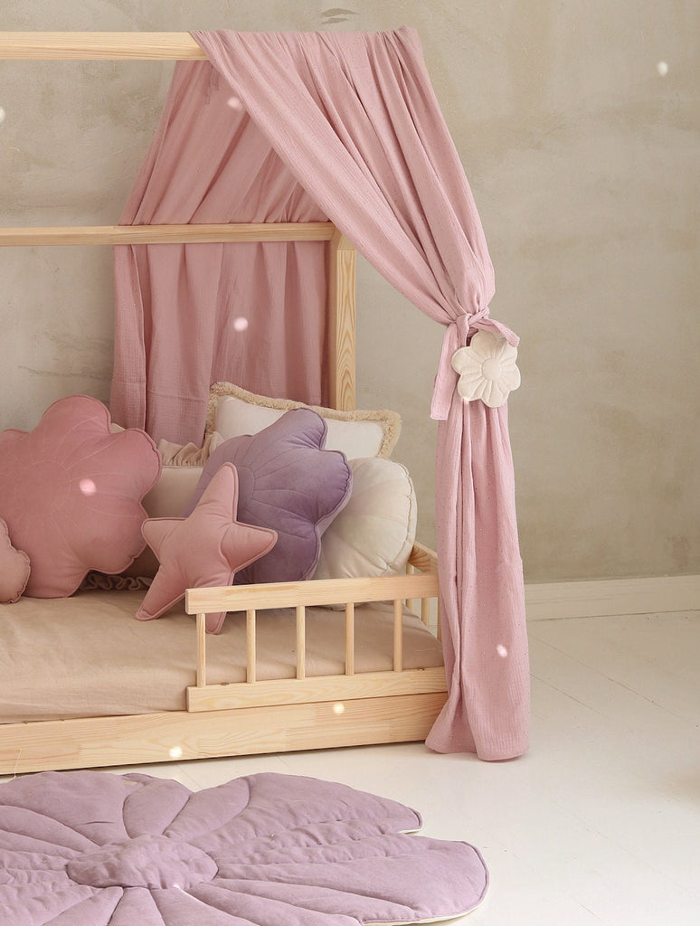 Muslin Canopy over the bed, Montessori Bed Canopy for children's room, house bed Curtains, Toddler Bed Canopy, Personalized house bed canopy