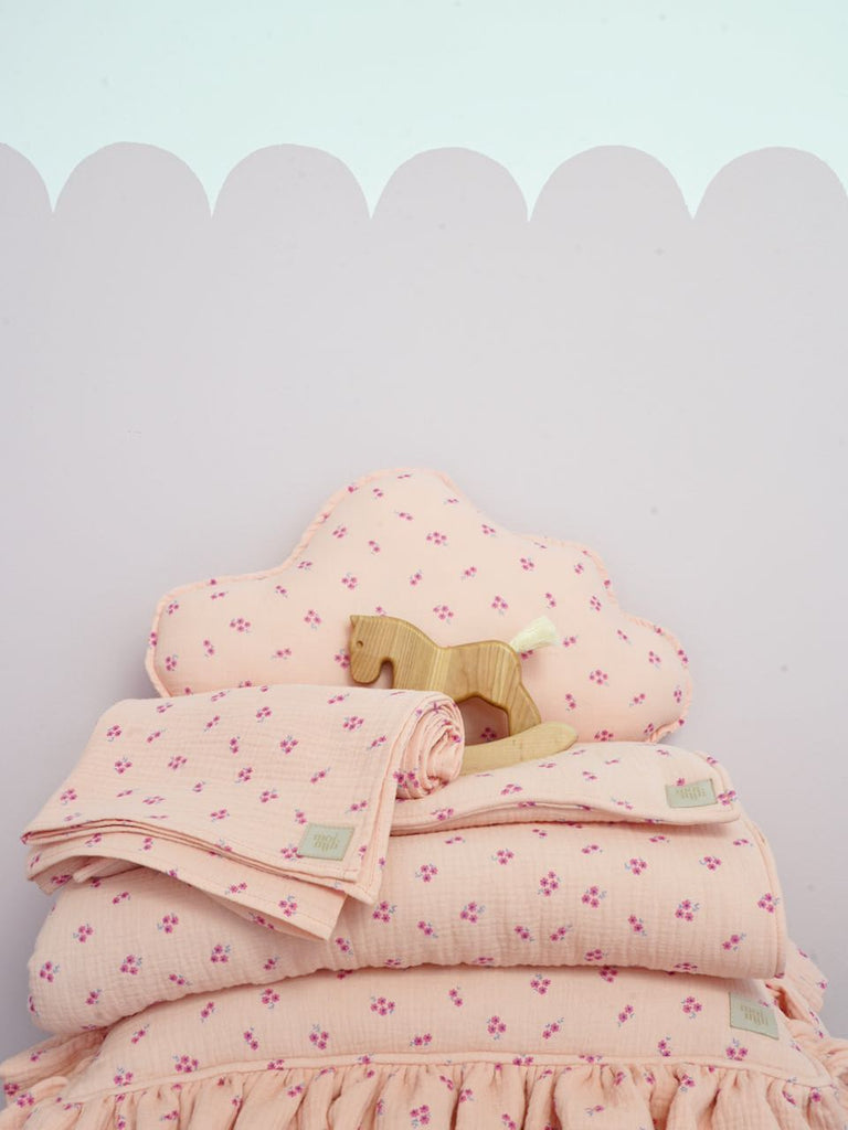 Pillow in the shape of a cloud, solidly made and sewn from high-quality floral muslin.