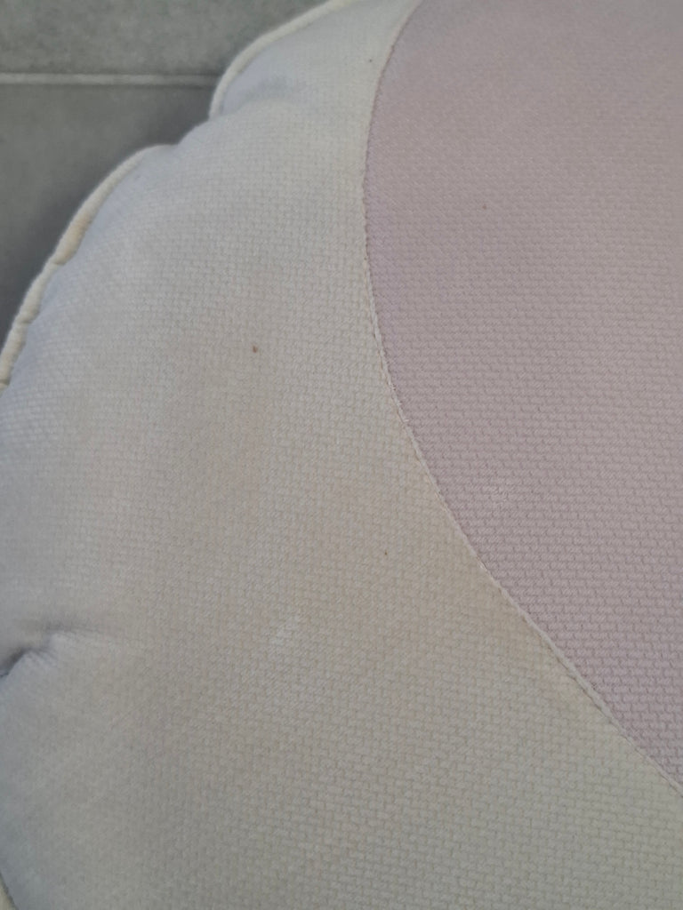 Extremadamente cómodo, este cojín blanco y rosa con motivo de la Luna forma parte de nuestra colección de verano. Se inspiró en los recuerdos de la felicidad total, la abrumadoramente hermosa naturaleza de California, un pañuelo alrededor de la cabeza y descansar sobre una manta. Este es un tributo de nosotros, los niños grandes, a la próxima generación. ¡Solo relájate!