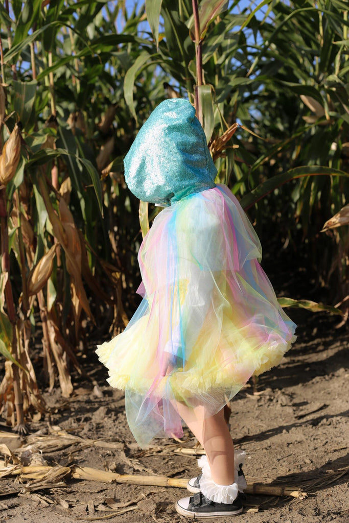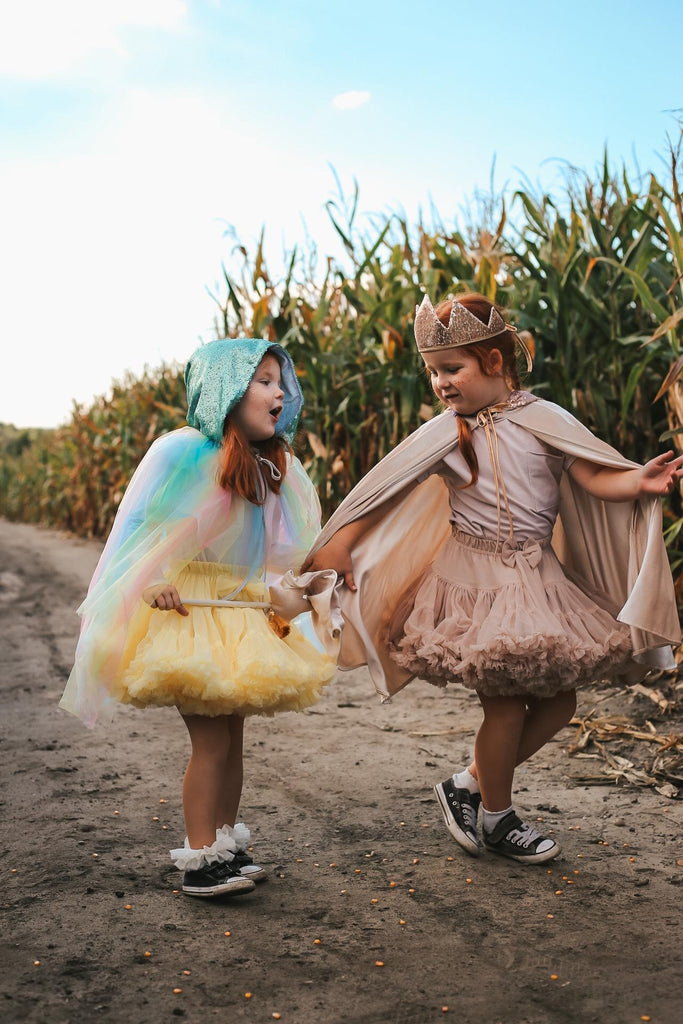If you're looking for the perfect outfit for Halloween or a magical costume, our tulle skirt with ruffles is sure to meet every girl's dreams. This skirt is enchanting with its light and airy design, adorned with shimmering sequins and velvet details made from the same fabric as our capes – together, they create the perfect costume set!
