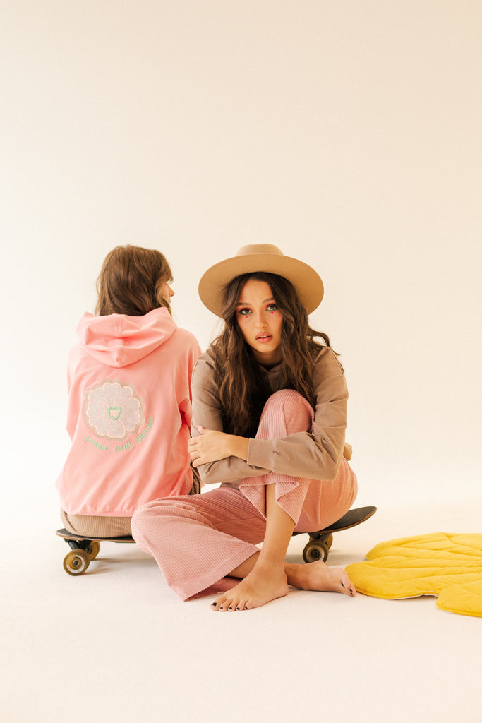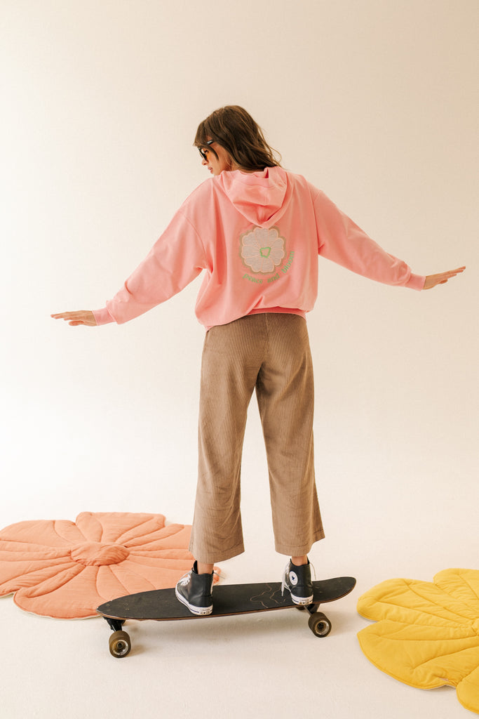 Notre sweat hippie rose capture l'ambiance décontractée des années 60. Que l'ambiance décontractée soit toujours avec vous dans votre sweat à capuche :-)