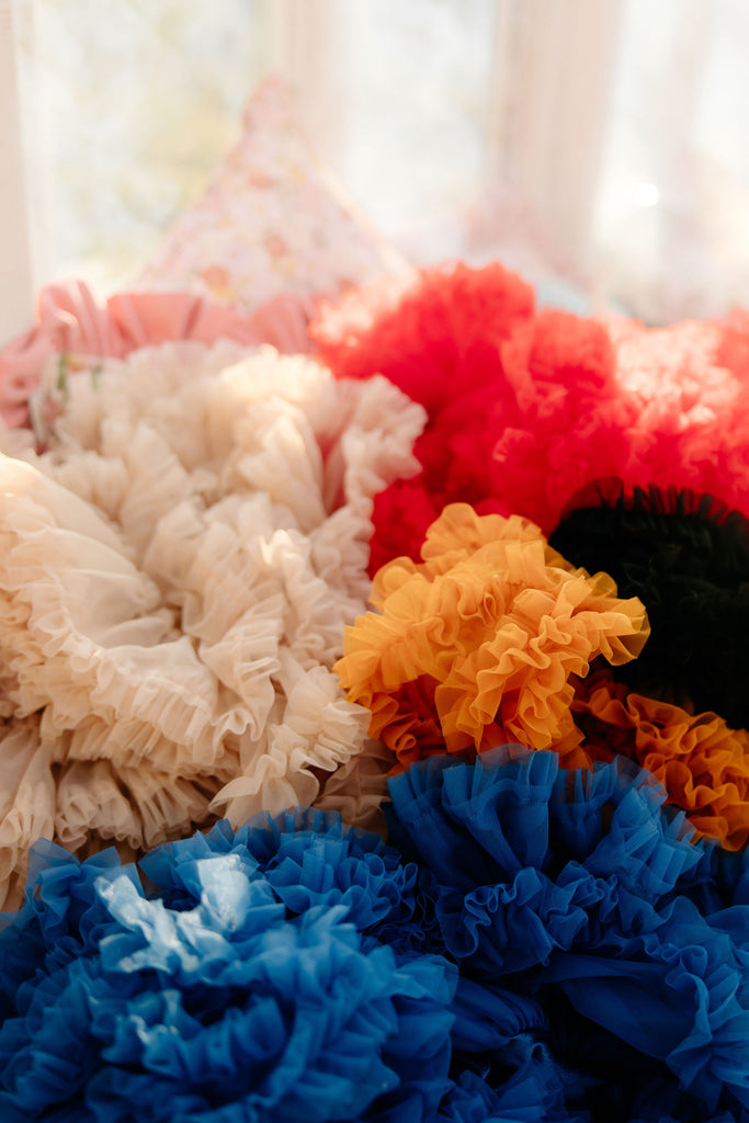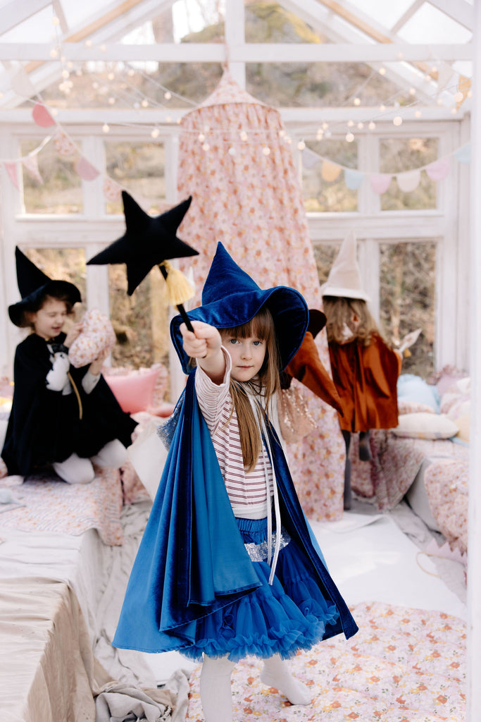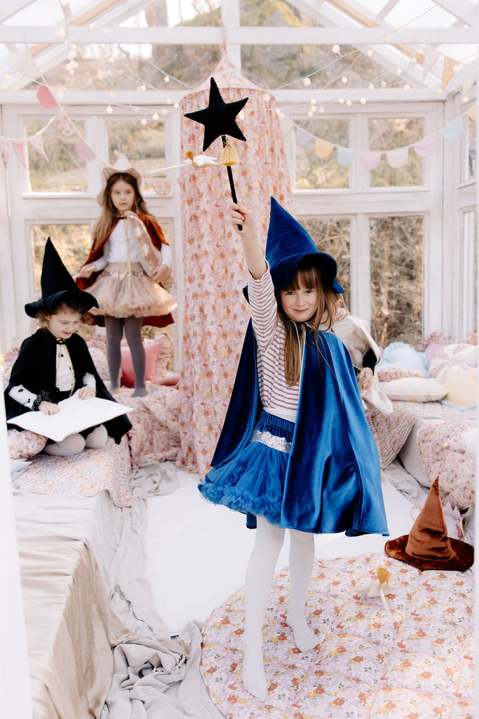 If you're looking for the perfect outfit for Halloween or a magical costume, our tulle skirt with ruffles will fulfill every girl's dream! It enchants with its light, airy design, shimmering sequins, and velvet details made from the same fabric as our capes – together, they create the perfect costume set!