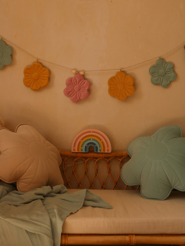 Maak verschillende boeketten van linnen en fluwelen bloemen uit de Moi Mili lentecollectie: kussens, matten en guirlandes die van het huis houden!