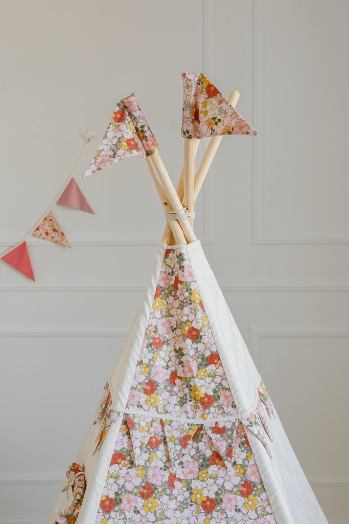 Cotton teepee tent for girls with flowers print “Green garden” floral and stylish tent, birthday gift idea for girl, spring home decoration